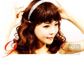 9、戴上一只漂亮的发卡,可爱的中卷发造型就完成了。