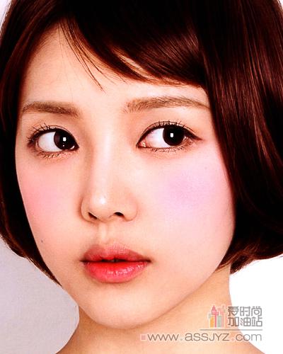 少女般的腮红妆核心是熏衣草腮红和大圈儿似的涂抹方法。腮红要略含珠光。这种方法的特点是,腮红不但要涂抹在笑肌上,还要在颧骨