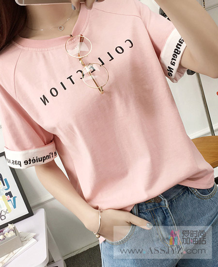 初语T恤很漂亮,五分袖很时尚,上面有字母