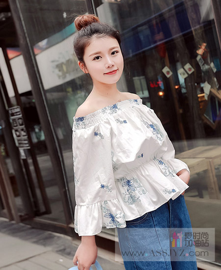 1、清影绣雅长袖一字领上衣