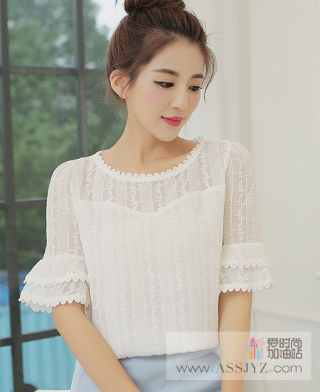 1、deervvaa/鹿奈五分袖蕾丝衫