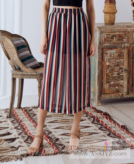 货号:BW-X475,颜色:宝蓝条纹色 橙红条纹色,面料:涤纶,裤长:九分裤,裤型:阔腿裤,风格:通勤