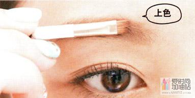 顺着眉毛生长方向用眉刷梳理。注意下手轻重眉妆不宜过薄,略加晕色让妆容自然。